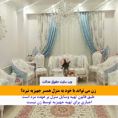 وب سایت حقوقی عدالت: طبق قانون تهیه وسایل منزل بر عهده مرد است. اجباری برای تهیه جهیزیه توسط زن نیست. سوالات حقوقی خود را در زیر همین پست مطرح کنید.